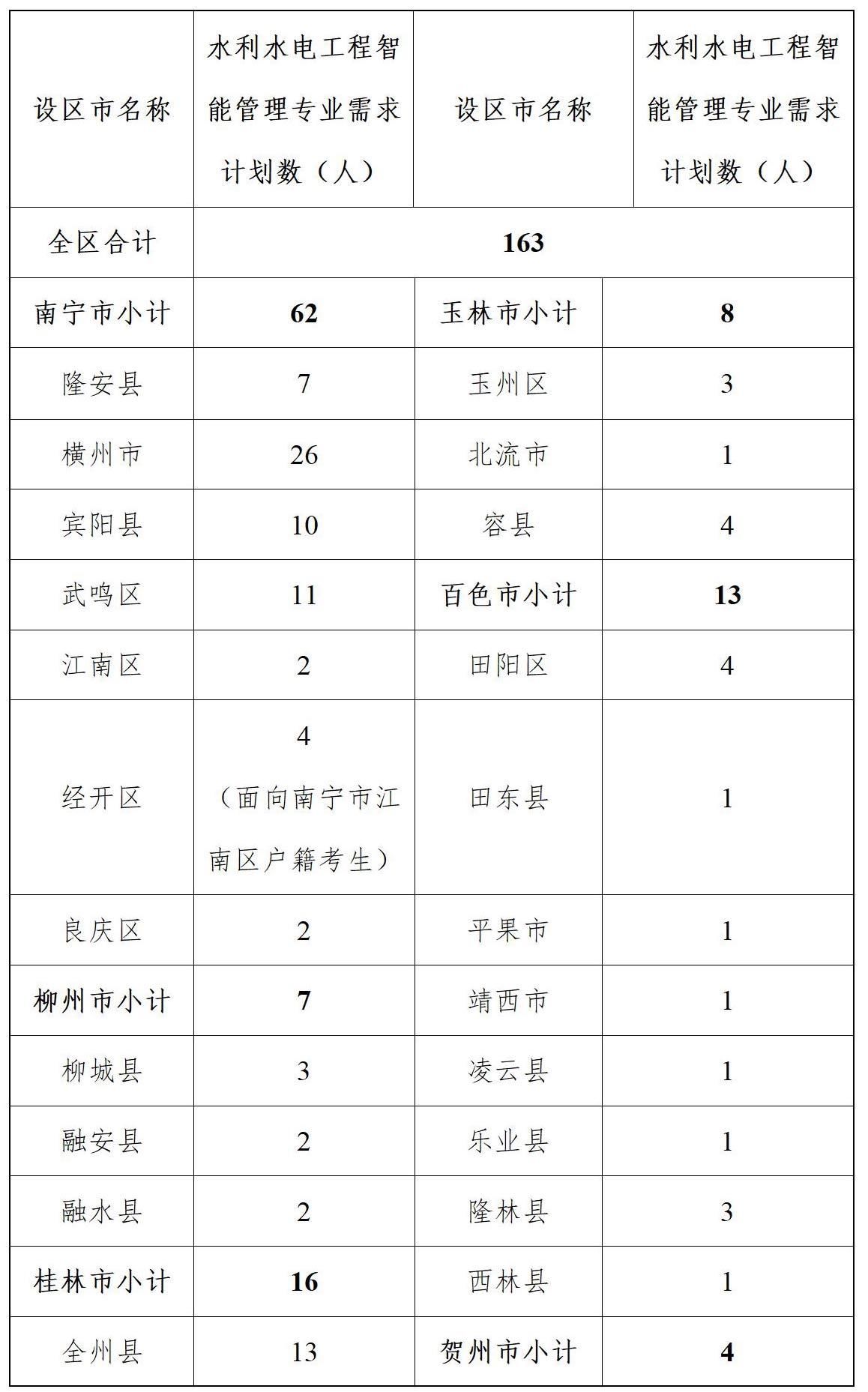 招收水利水电工程智能管理专业(提前批,理工类)163人(以广西招生考试院公布为准)